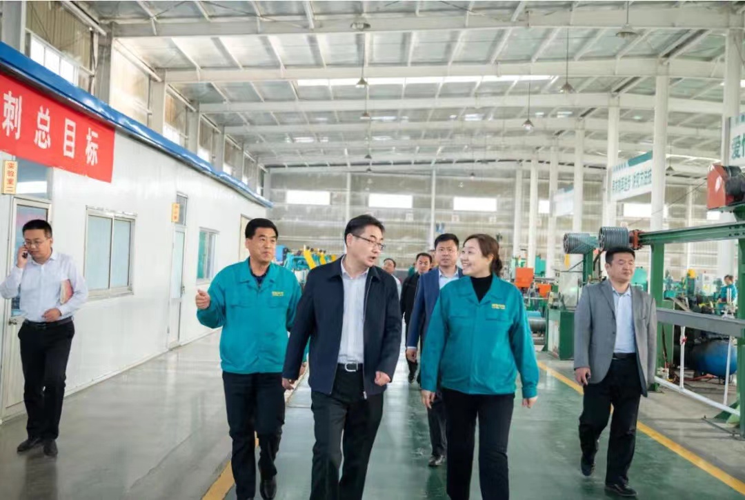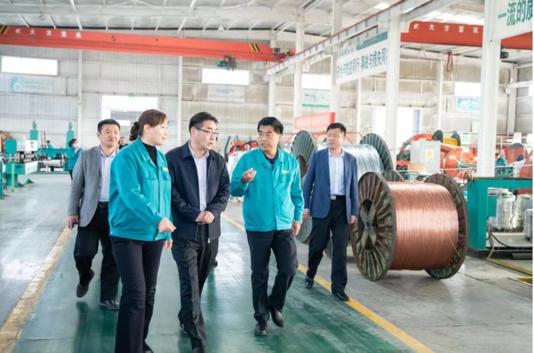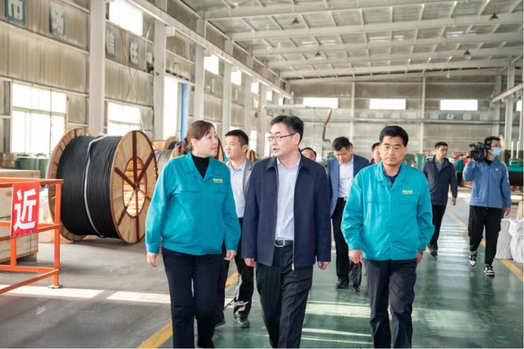 崔磊縣長不僅和王紅梅董事長進行瞭(le)細緻的座談,還深入到車間和技改(擴建)項目工地詳細瞭(le)解企業的生産和工程進度情況。王紅梅董事長首先向各位領導的到來表示瞭(le)熱烈的歡迎和衷心感謝,並(bìng)向領導們詳細介紹瞭(le)新魯星電纜的發展曆程和當前所面臨的發展機遇與挑戰。